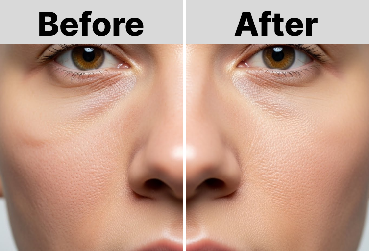 - 3–4 sessions: Visible reduction in scars and pores