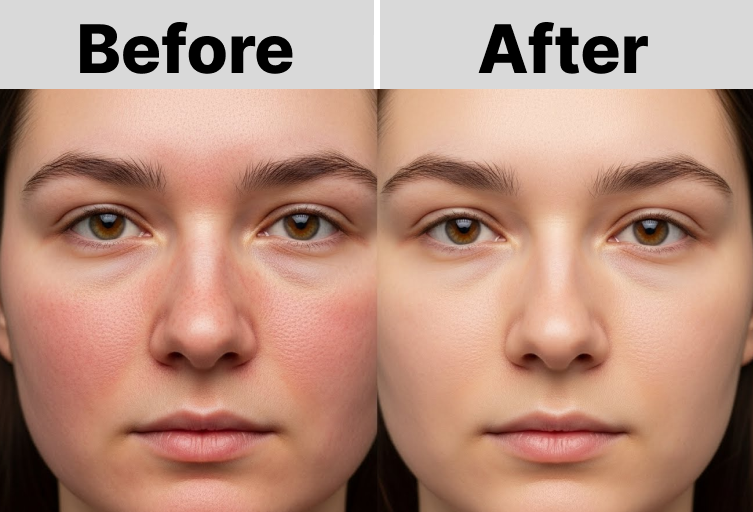 - After 1–2 sessions: Reduced redness and flushing