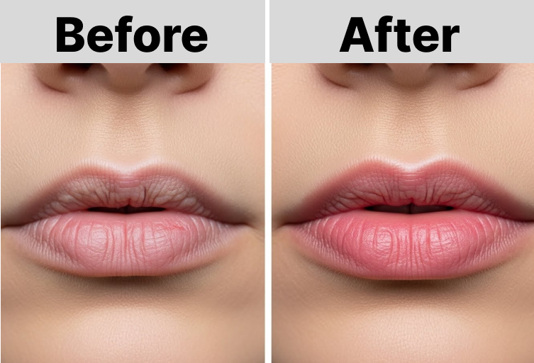 - Immediately after treatment: Lips look brighter but slightly swollen